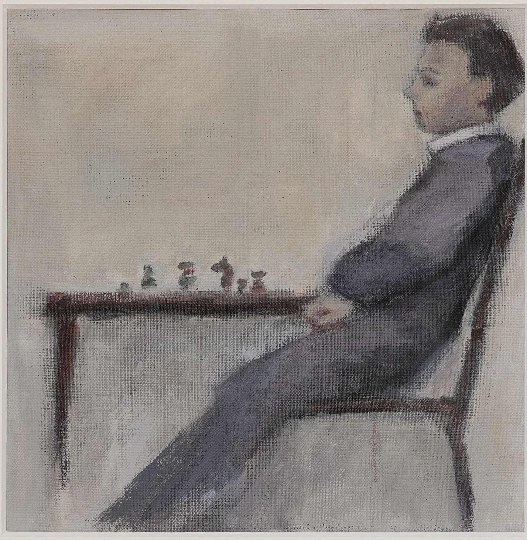 I work without preliminary sketches and draw directly on raw canvas with chalk and charcoal. My motives evolve over time and emerge from ideas that form in my consciousness. The compositions are pared down with flat and simplified sense of perspective. The muted colors and lack of details reduce visual distraction and lead the gaze inwards