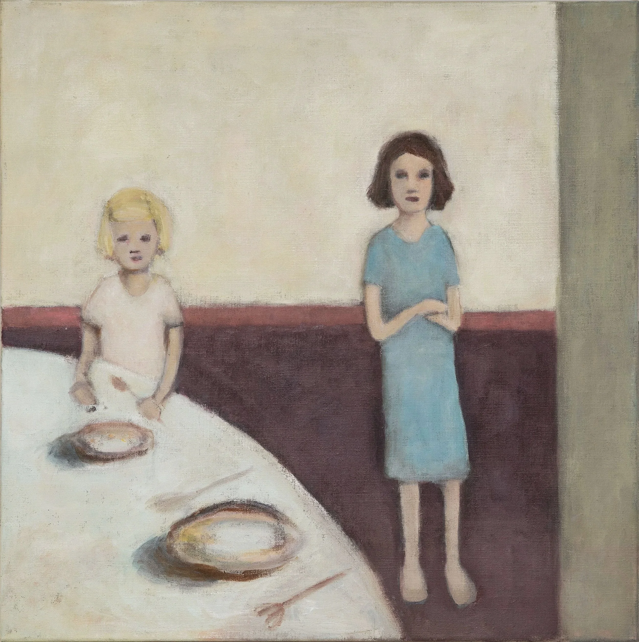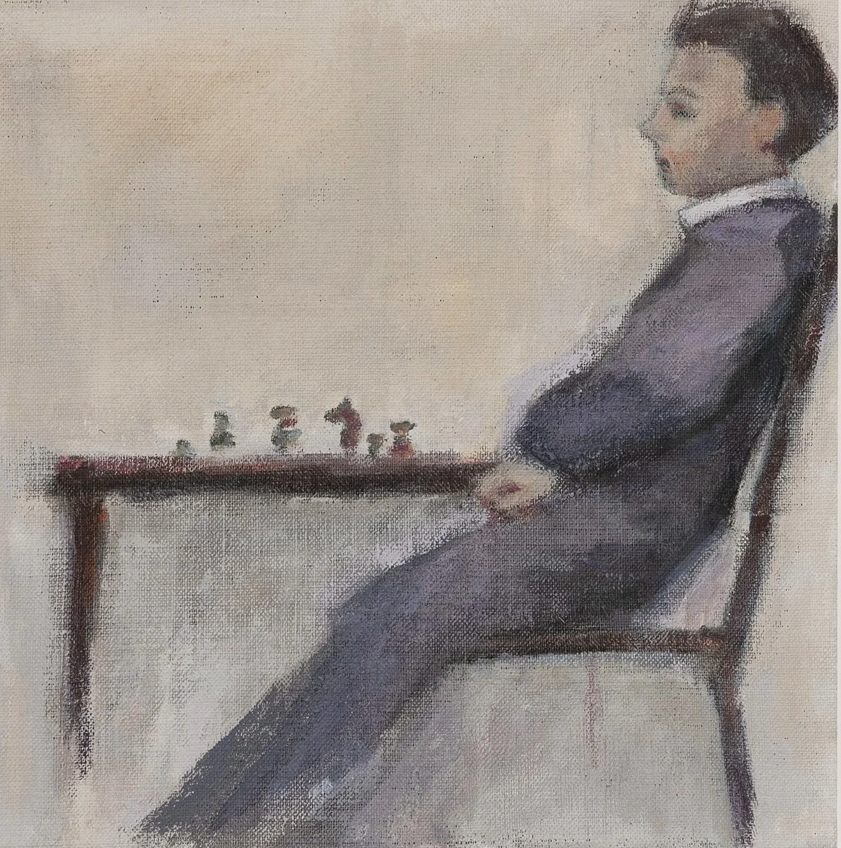 My motifs frequently depict children and adolescents at transitional points - before a move or a decision. Narrative resolution is deliberately withheld. The paintings are structured around the threshold: the interval in which meaning has not yet stabilized. Working with a muted palette and a loosely rendered surface, I allow forms to remain partial unresolved, resting closure. The work is concerned with the tension that emerges when action is imminent but deferred